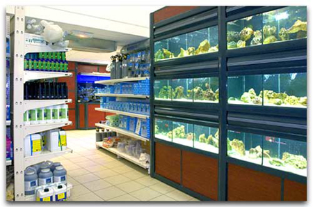 Au fond du magasin et avant le sas vers l'eau douce la baterie de coraux